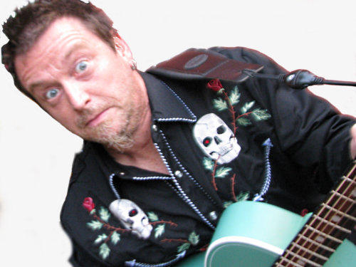 ohne Haare. Vielsaitig spielt er was kommt und singt mit,